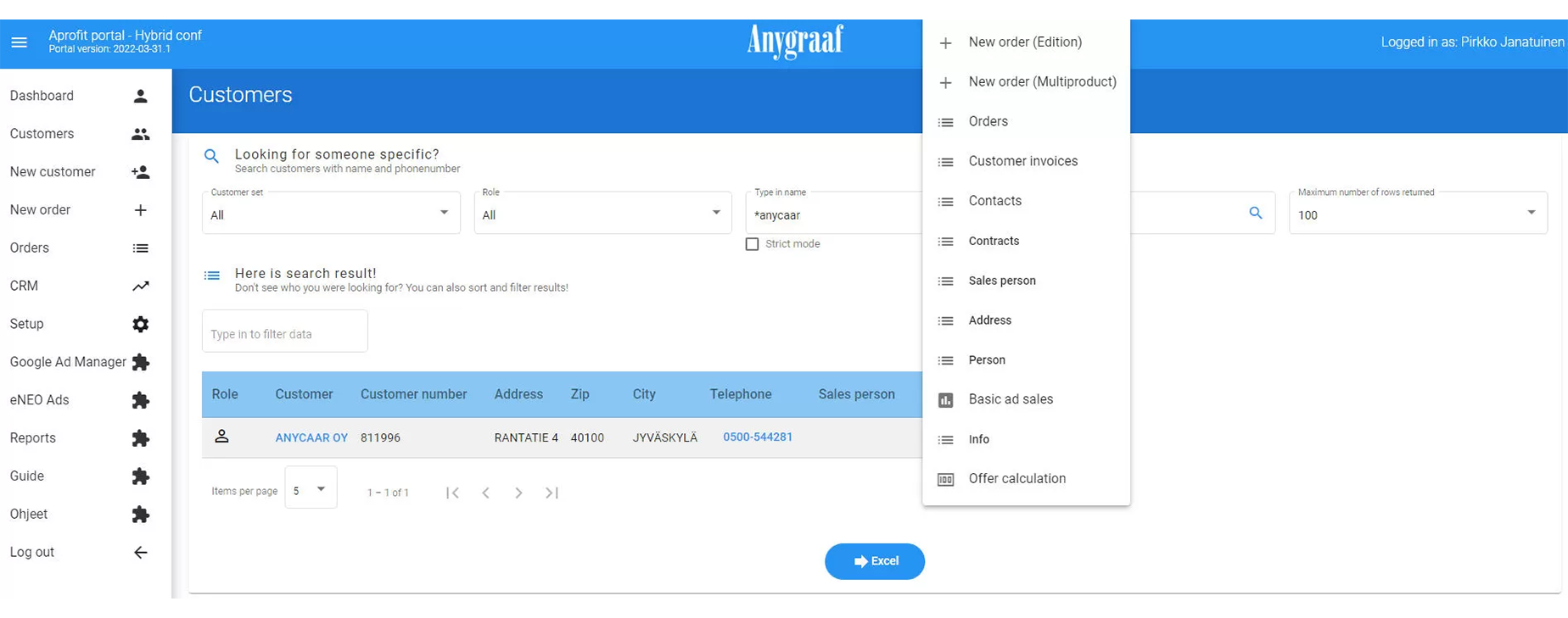 Compatible with other products The compatibility of AProfit and Anygraaf's other products enables the use of a common database for efficient customer and account management